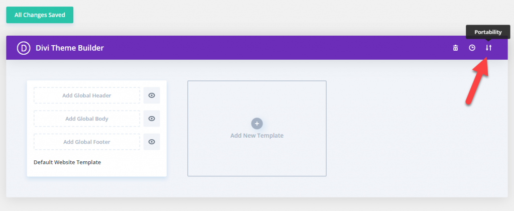 Now Hover over to Divi > Theme Builder and click on ‘ Portability ‘ Button at the top right corner.