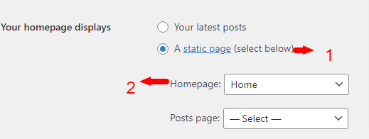 → Select HomePage from the drop-down that you need to set for your website like in our case it is ‘ Home ‘